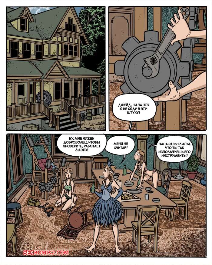 Порно комикс Сумерки. Часть 2. The Gloaming. Hans Rickheit Три сестренки нашли коробку с секс игрушками и решили ими воспользоваться, начав ласкать друг дружку. Красотка за этим делом застал старик и они стали отсасывать его член, после чего дали себя выебать.