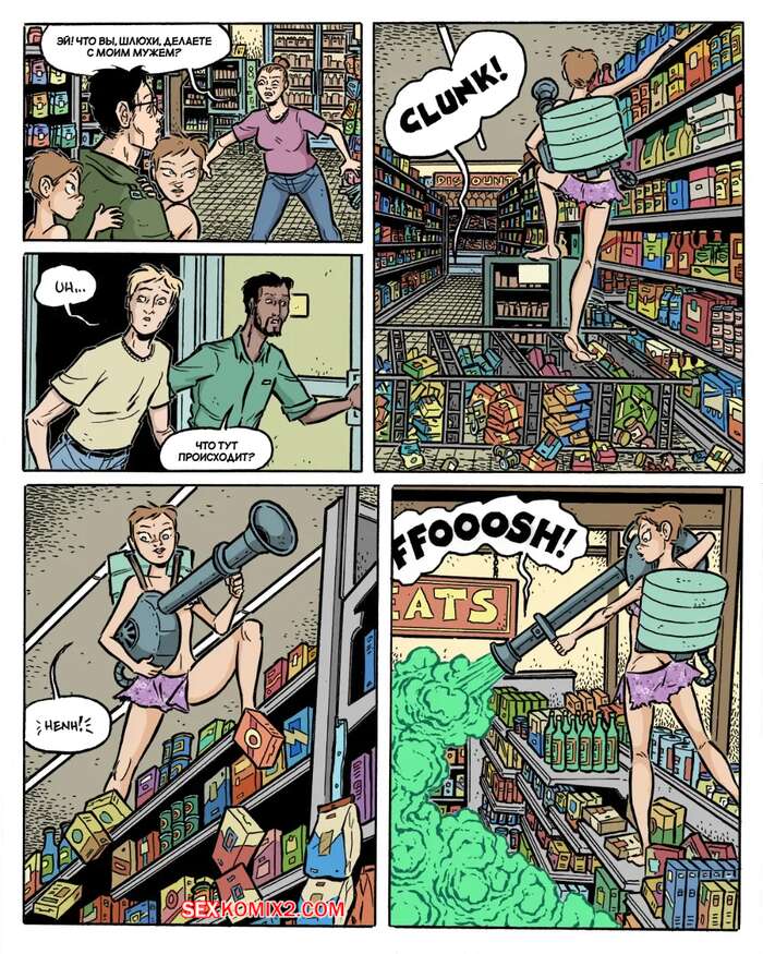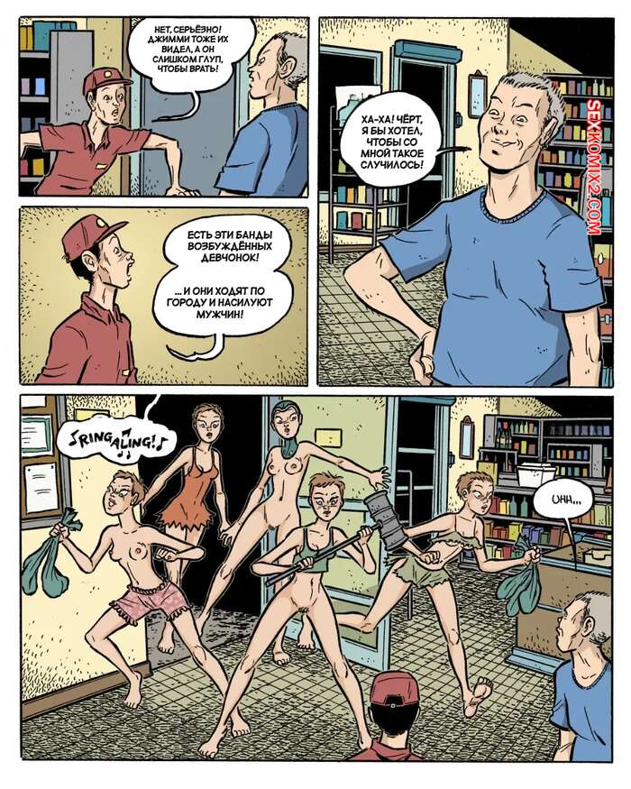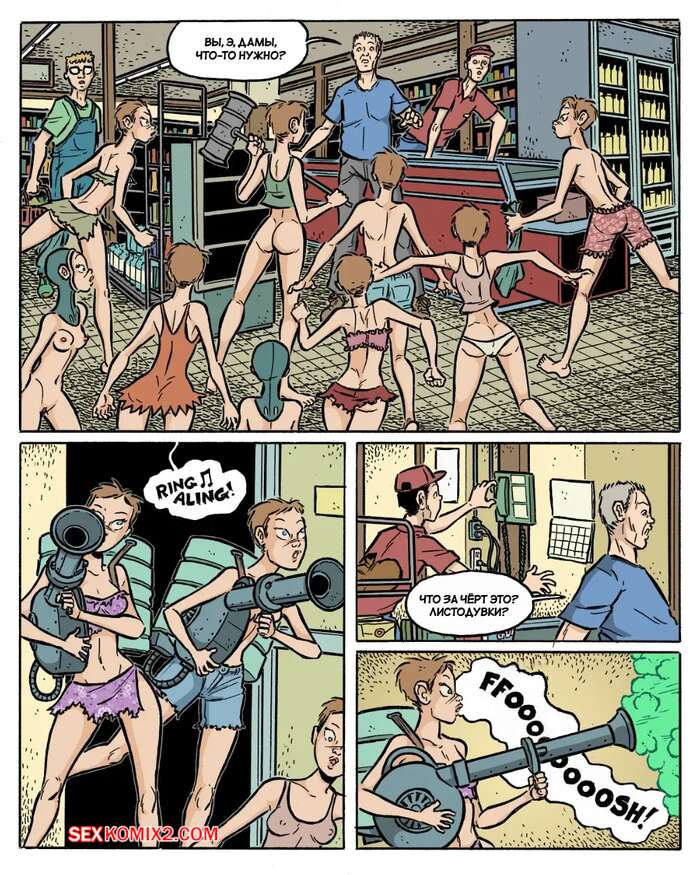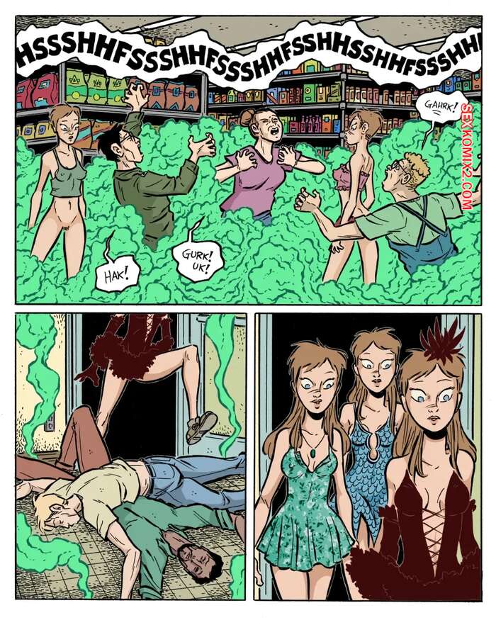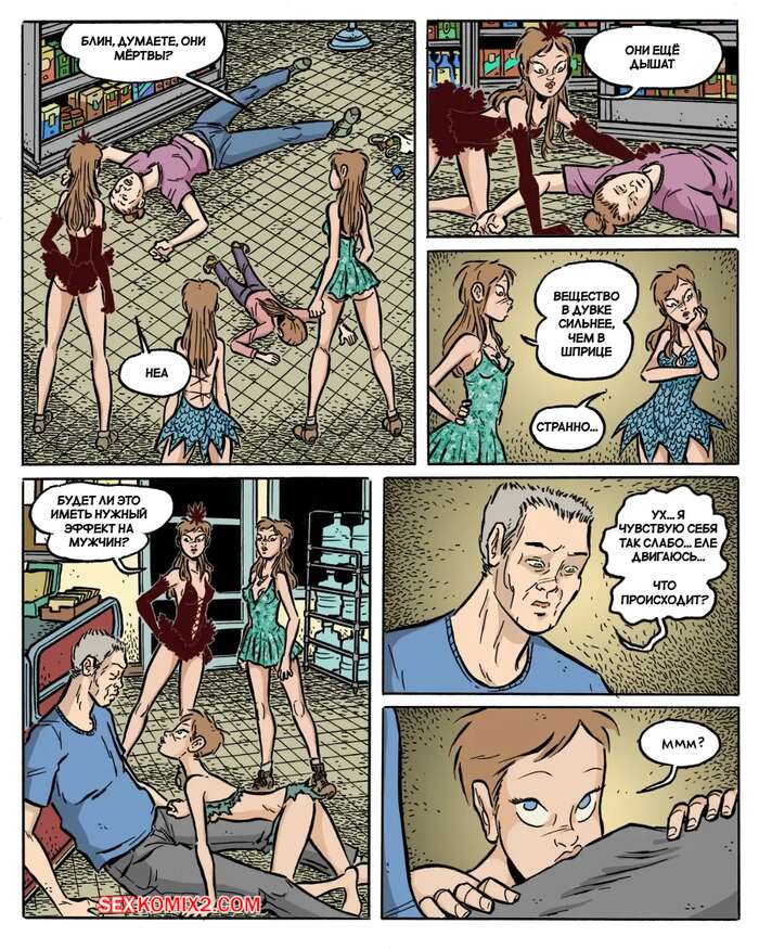 Порно комикс Сумерки. Часть 6. The Gloaming. Hans Rickheit Покупатели магазина подверглись влиянию газа и теперь испытывают сильное возбуждение. Красотки раздеваются и сосут хуи парней вокруг, после чего дают им себя выебать.