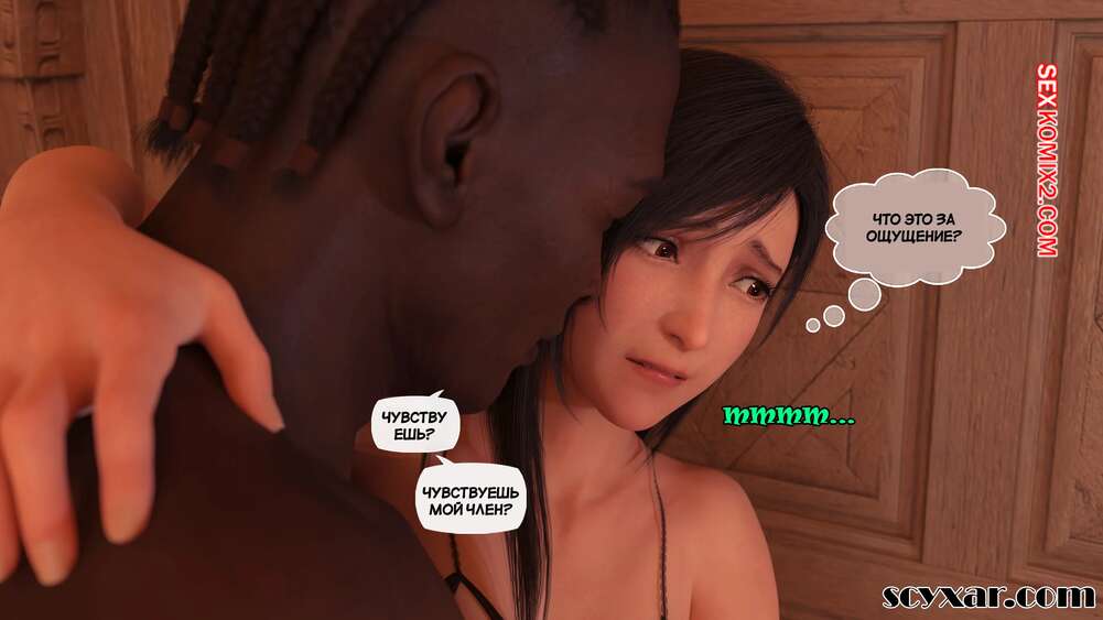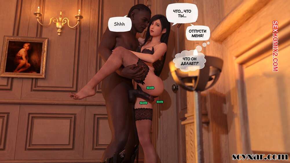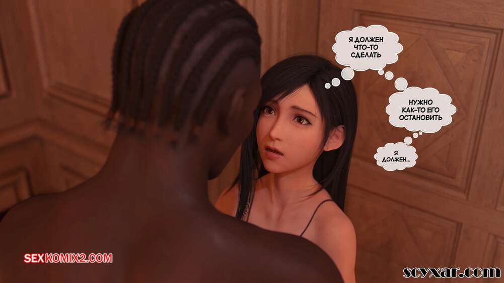 Порно комикс Final Fantasy. Тифа неторарэ. Часть 2. Tifa NTR. Scyxar Studios Горячая брюнетка осталась наедине с темнокожим парнем, который был поражен ее шикарным телом. Он взял девушку на руки и вставил в нее член, после чего стал трахать ее узкую пизденку.
