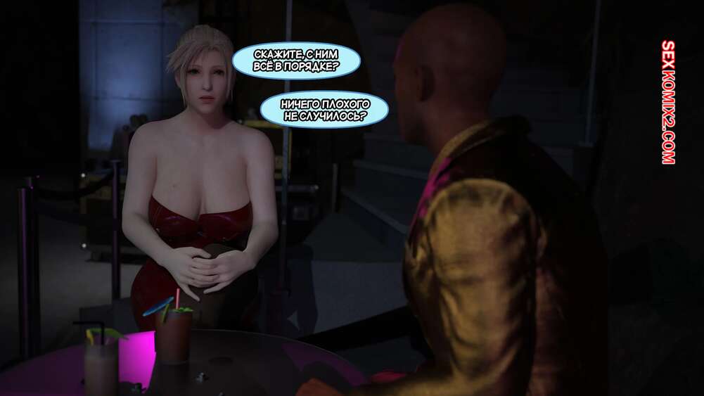 Порно комикс Final Fantasy. Тифа неторарэ. Часть 7. Tifa NTR. Scyxar Studios Горячая блондинка выпивала в баре и она привлекла внимание темнокожих парней. Они соблазнили девушку и поставили ее на колени, после чего она стала сосать их большие хуи.