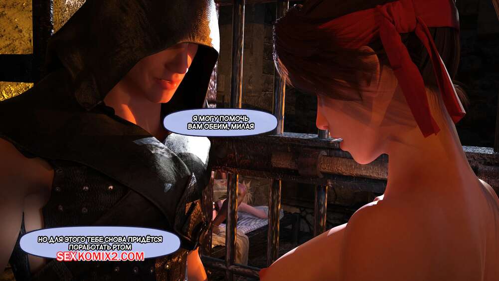 Порно комикс Final Fantasy. Тифа неторарэ. Часть 9. Tifa NTR. Scyxar Studios Стражник пробрался в камеру к спящей блондиночке, желая воспользоваться моментом по полной. Он вставил член в пизденку девушки и стал ее трахать, пока его коллега давал в рот брюнеточке.
