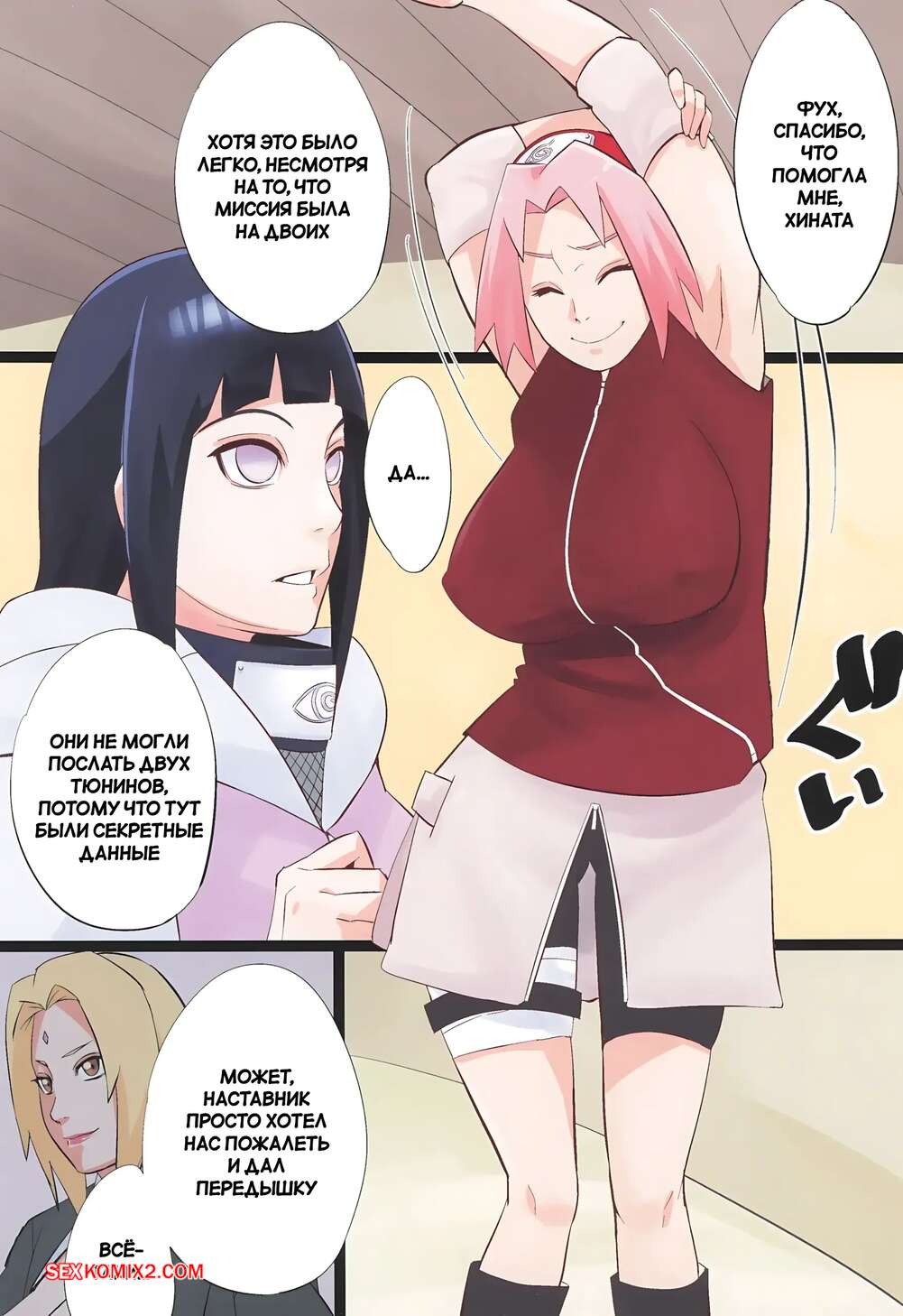 Порно комикс Наруто. Наруто топ. Sahara Wataru. Хината и Сакура решили расслабиться после тяжелого дня и стали соблазнять Наруто своими аппетитными формами. Девушки разделись и отсосали большой хуй парня, после чего он по очереди их выебал.