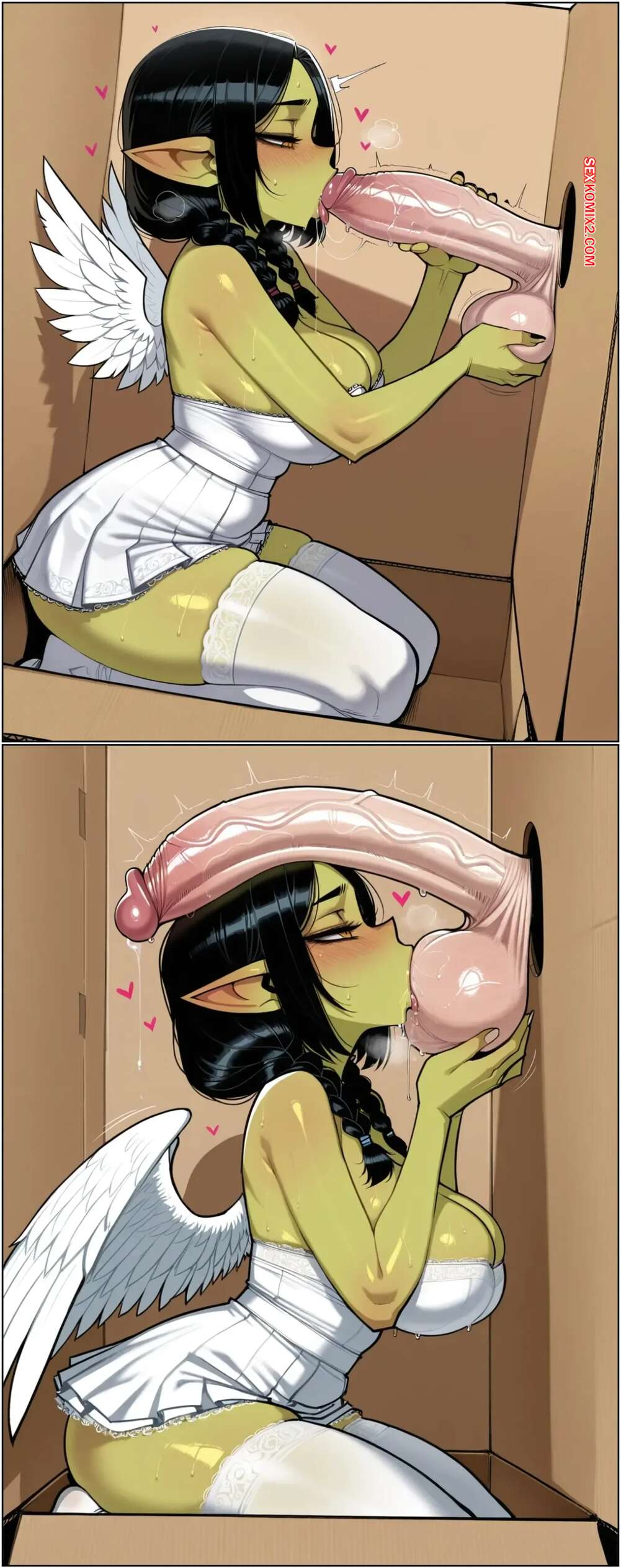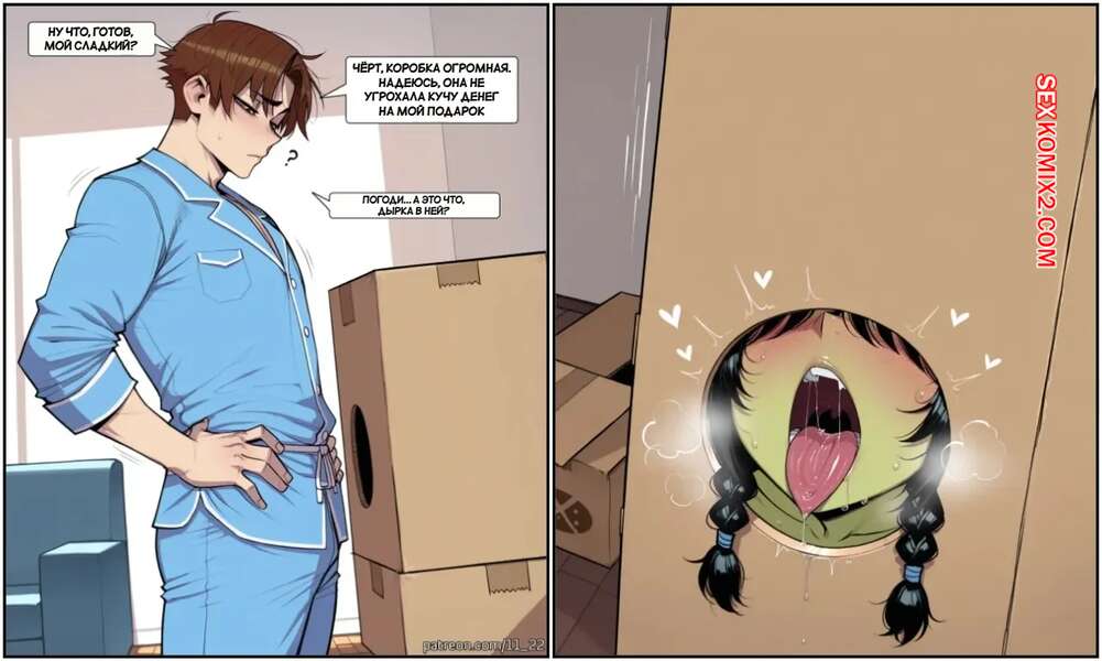 Порно комикс Гоблин девочка. Картонная коробка. Goblin Girl Requester OC Cardboard Box. 11 22. Горячая брюнетка с шикарным телом села в коробку и парень не смог устоять перед соблазном. Он засунул член в дырку коробки и девушка стала у него отсасывать, после чего раздвинула ножки и дала себя выебать.