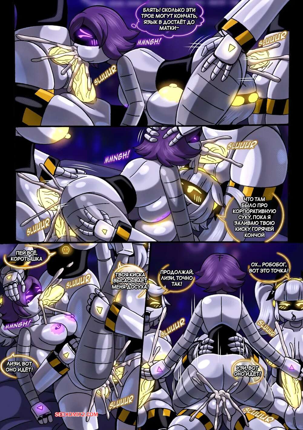 Порно комикс Игра Узи. Uzis Game. RodAkihiro. Девушки роботы возбудились и решили повеселиться все вместе. Они разделись и стали ласкать друг дружку, после чего занялись страстной групповой еблей с двойным проникновением.